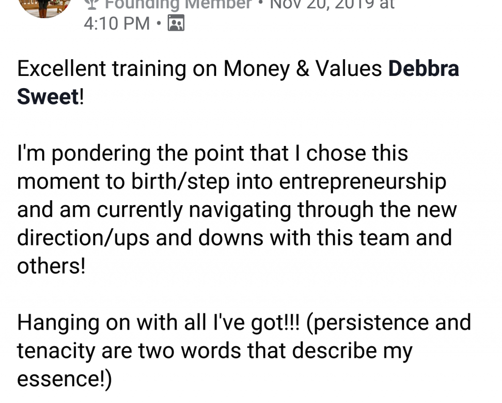 "I have known Debbra for over 10 years and in that time, she has always been supportive, trustworthy and creative and positive with any situation that comes up. Actually, of the Top Attributes listed I would attribute every single one to her. Personable, Good Value, On Time, High Integrity, and more. She has a knack for thinking out of the box and conveying her ideas! Debbra is an enthusiastic and inspiring Speaker and Trainer to listen to and what she has to say is never boring. Kudos to you Debbra!"